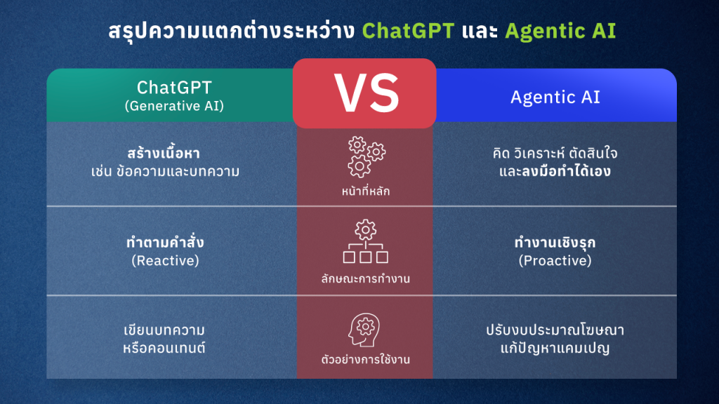 Agentic AI คือ AI ที่ไม่เพียงแค่ตอบสนองต่อคำสั่ง แต่สามารถ: